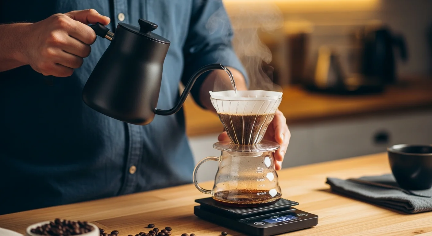 ハリオV60ドリッパーの使い方を初心者向けに徹底解説。螺旋リブの仕組みから基本手順、失敗しないコツ、道具選びまで、V60で美味しいコーヒーを淹れるための全知識をお伝えします。