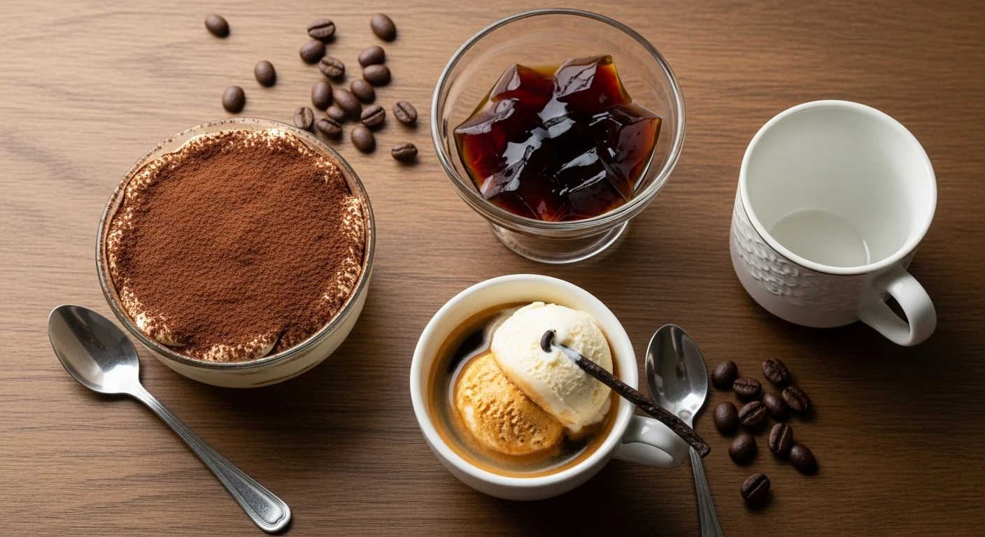 ティラミス、コーヒーゼリー、アフォガート、コーヒーグラニータなど、自宅で簡単に作れるコーヒーデザートのレシピを初心者向けに紹介します。