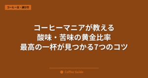 最初は思うようにいかないこともあるかもしれませんが、それもコーヒーの楽しみの一つです。毎日少しずつ試行錯誤を重ねることで、きっとあなた好みの完璧な一杯に出会えるはずです。コーヒー豆の酸味と苦味の違いを理解しながら、素敵なコーヒータイムをお過ごしください!