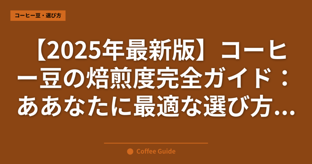 【2025年最新版】コーヒー豆の焙煎度完全ガイド:あなたに最適な選び方を徹底解説 コーヒーの味わいを決定づける最も重要な要素の一つが焙煎度です。同じコーヒー豆でも、焙煎度によって酸味、苦味、香りが劇的に変化します。2025年現在、多くのコーヒー愛... -