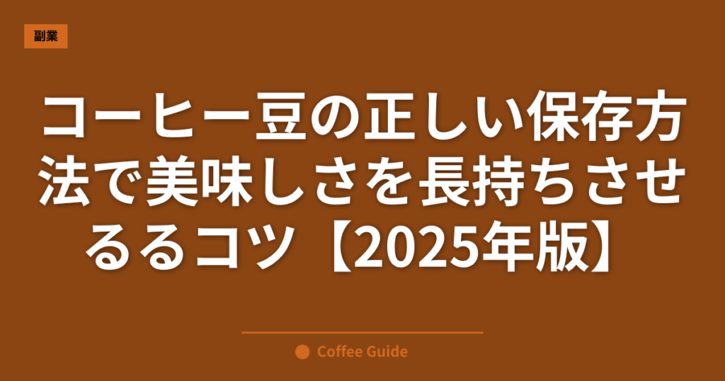 コーヒー豆の正しい保存方法で美味しさを長持ちさせるコツ【2025年版】
